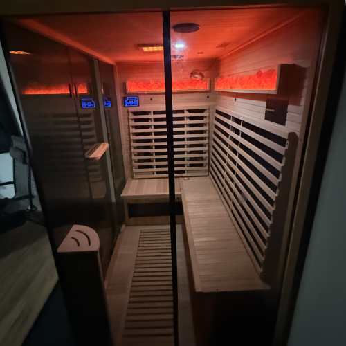Recovery made easy: NormaTec boots, red light sauna, and space to stretch.